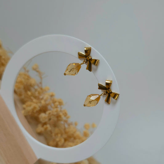 Golden bow and clear drop dangle earrings