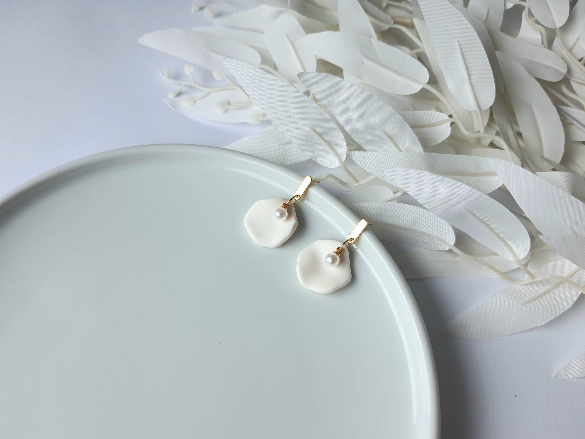 Handmade pearl dangle earrings.