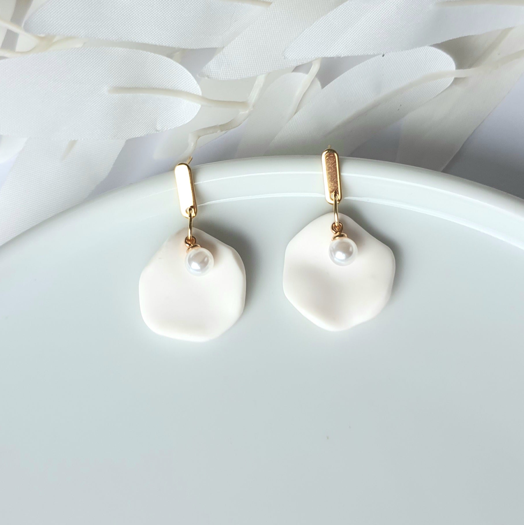 Jewelry material: polymer clay, stainless steel gold plated.