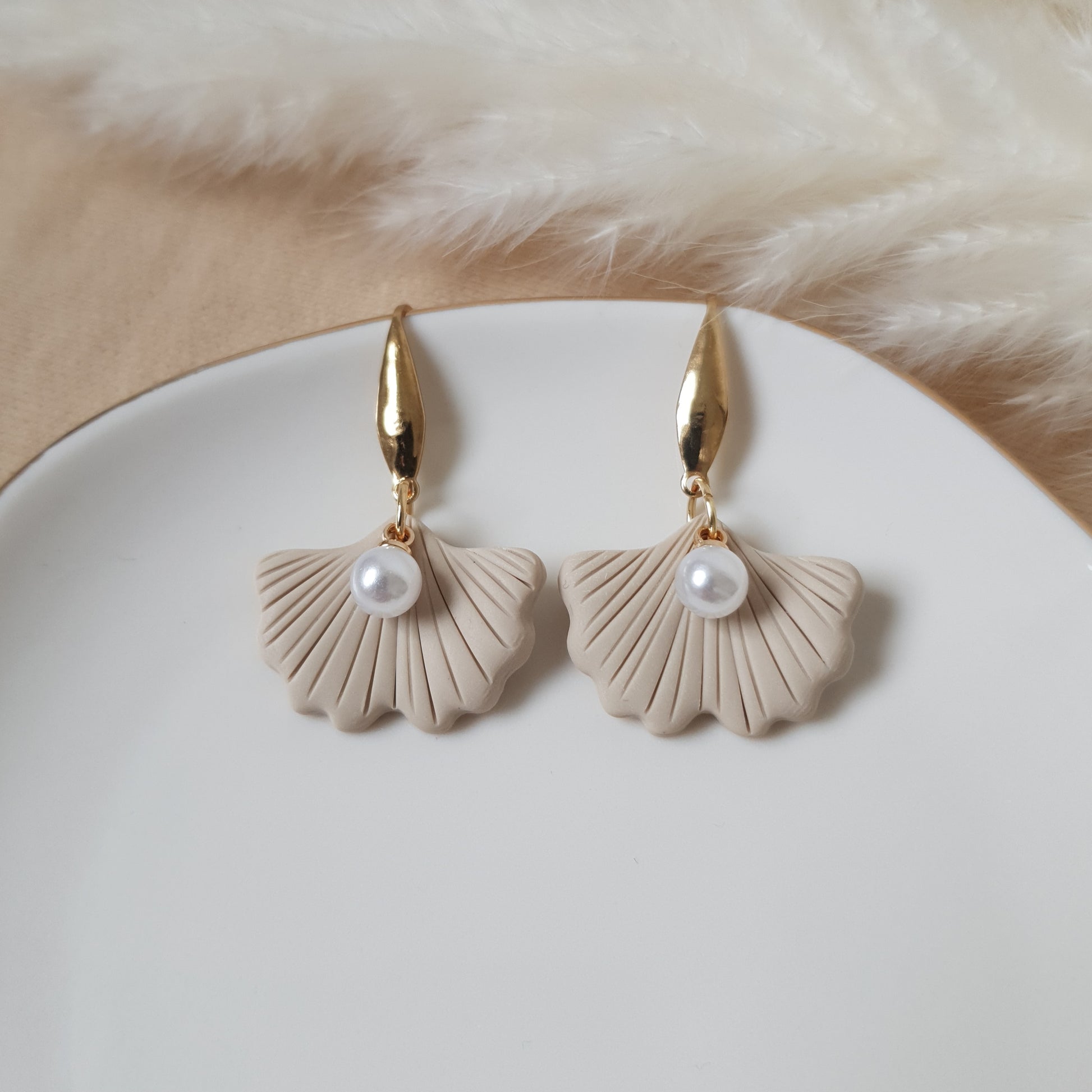 Beige ginko earrings
