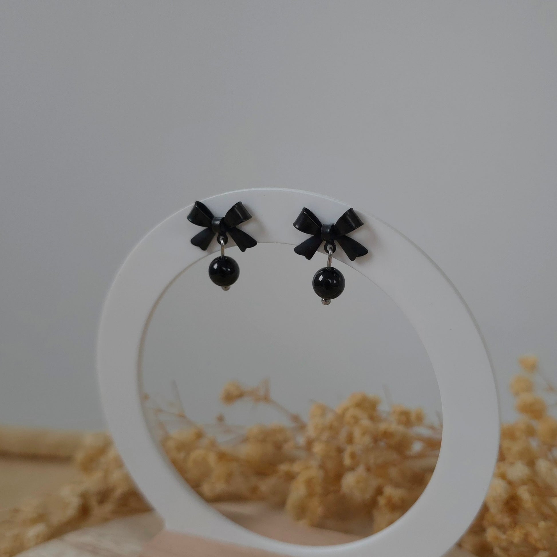 Black bow and onyx earrings.
