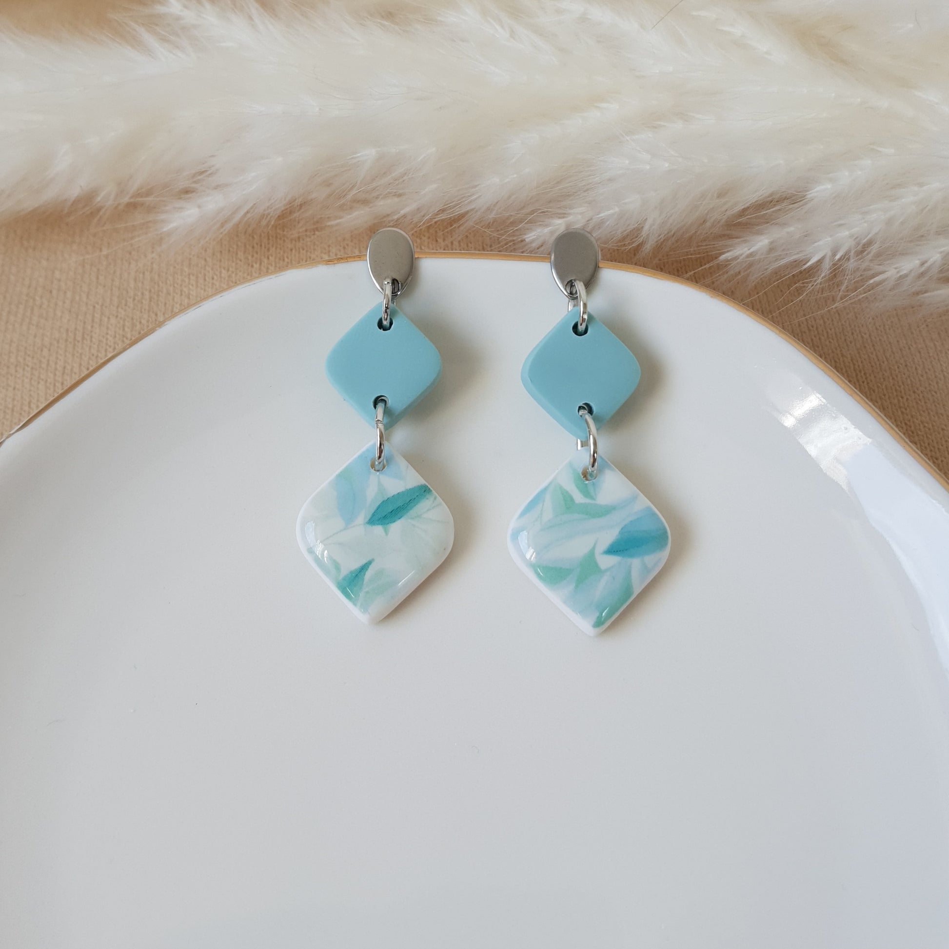 Dusty mint leaf earrings