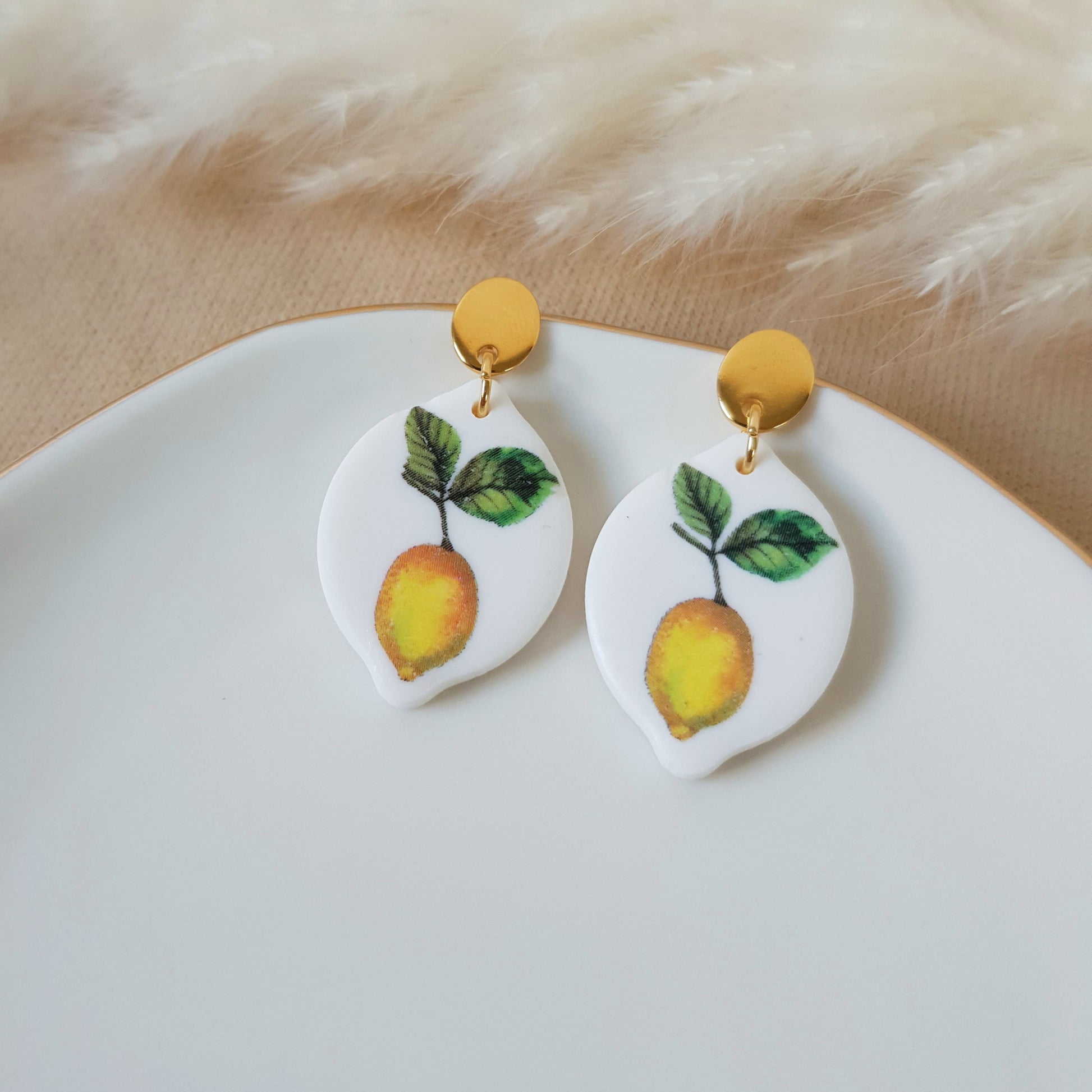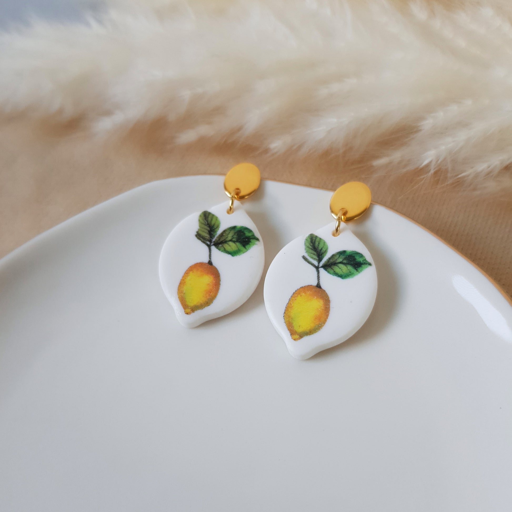 Handmade lemon earrings.