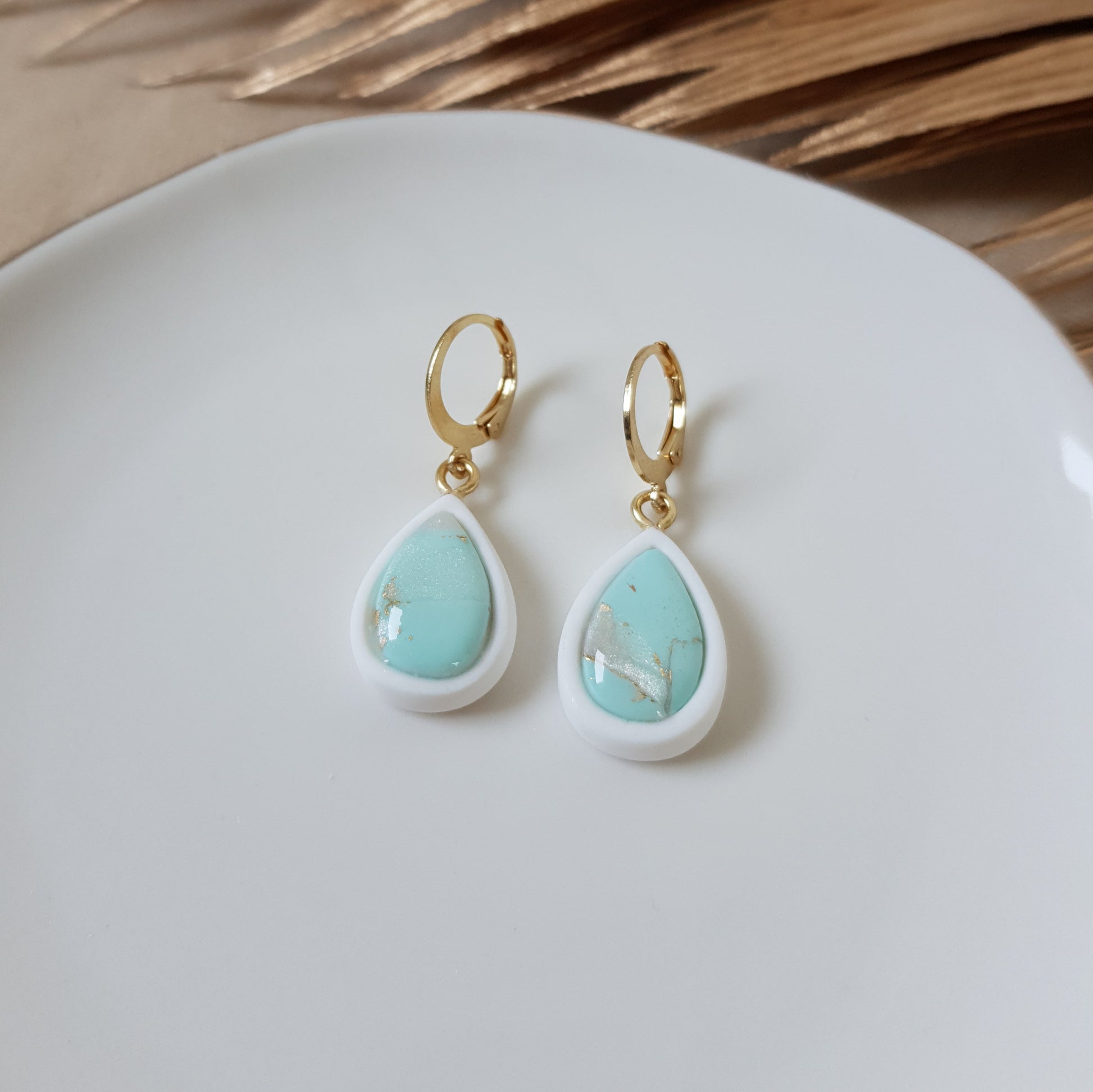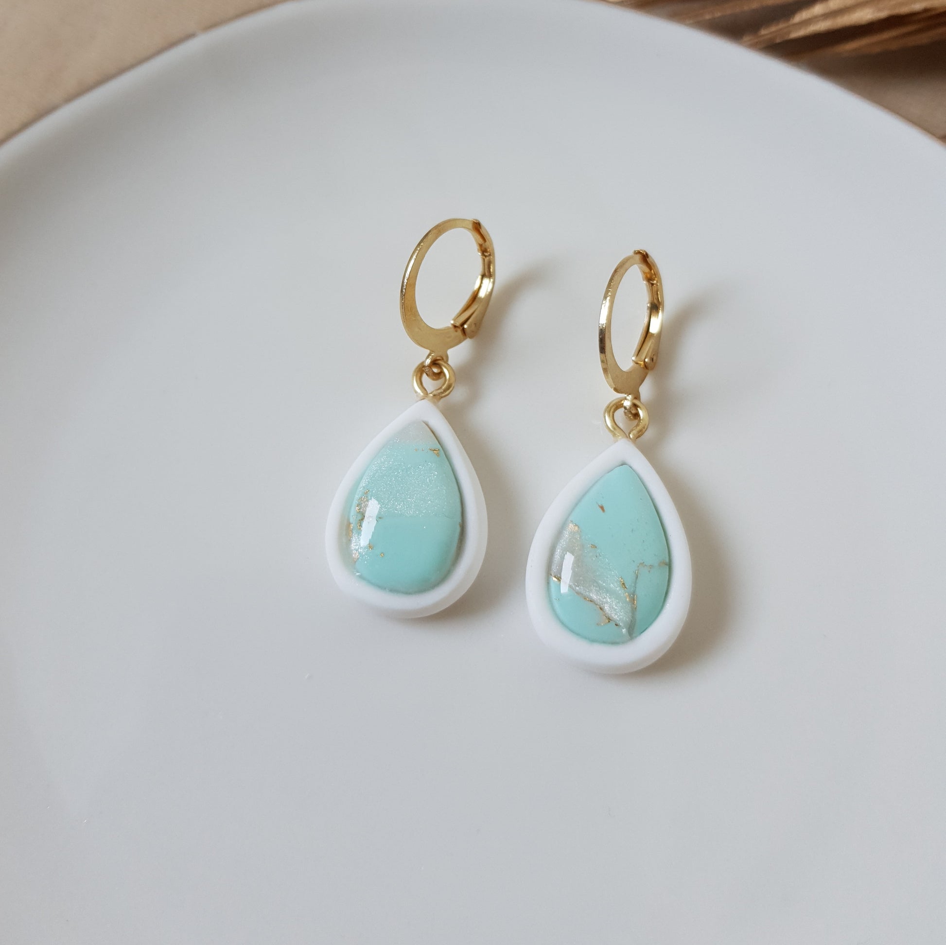 Minty faux stone drop earrings