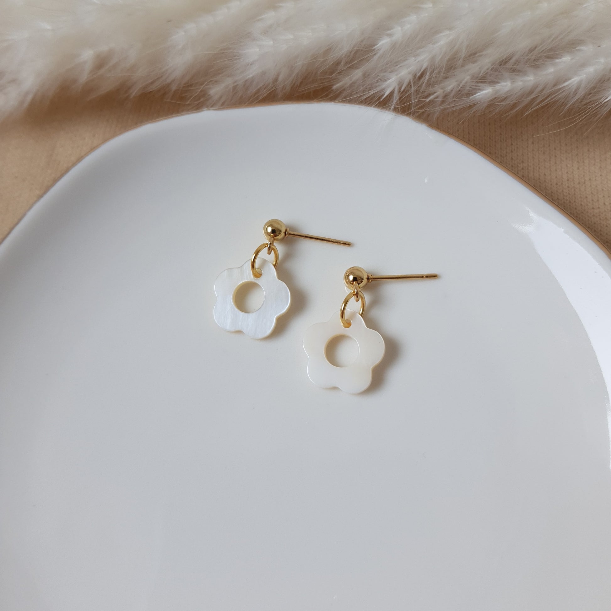 Pearly daisy dangle earrings