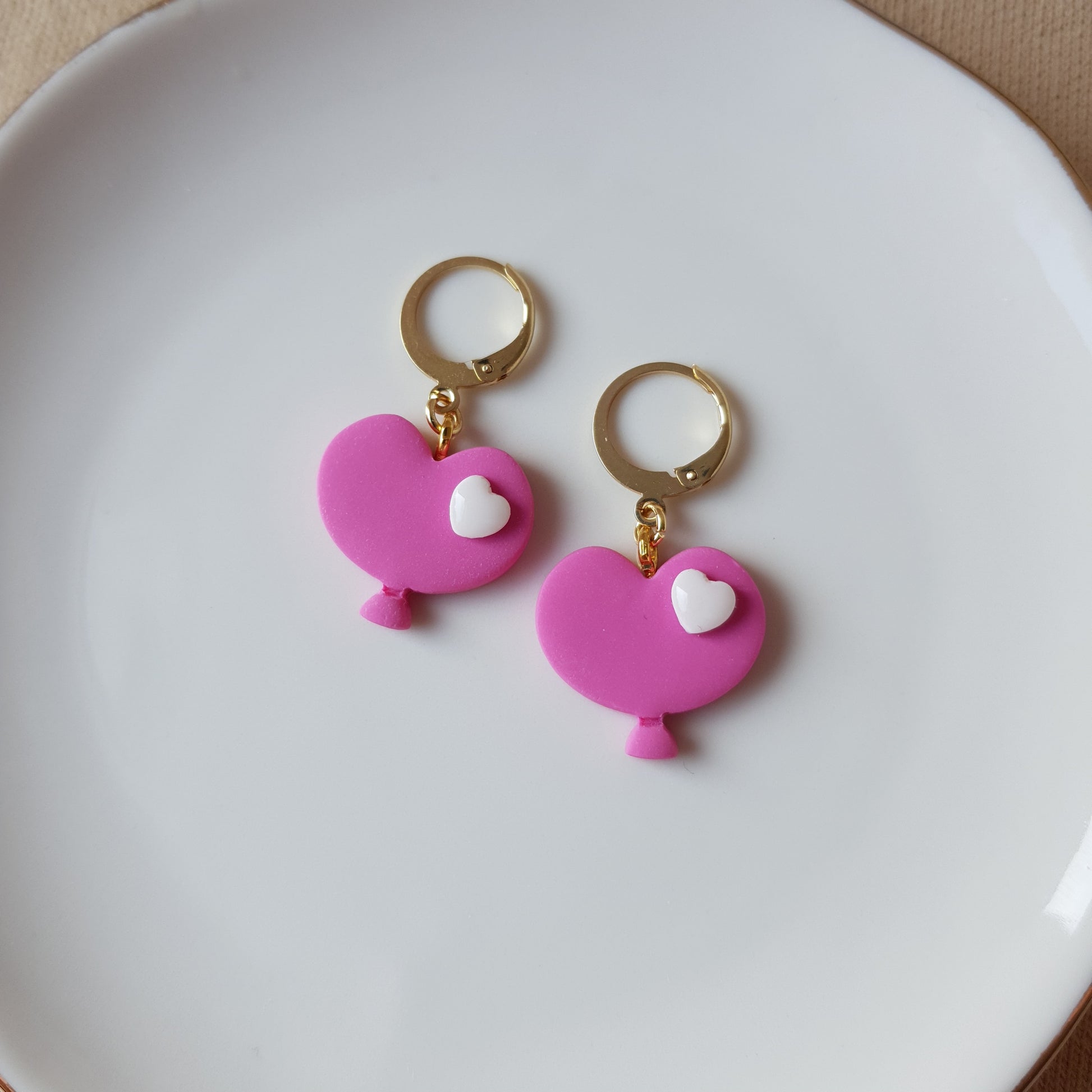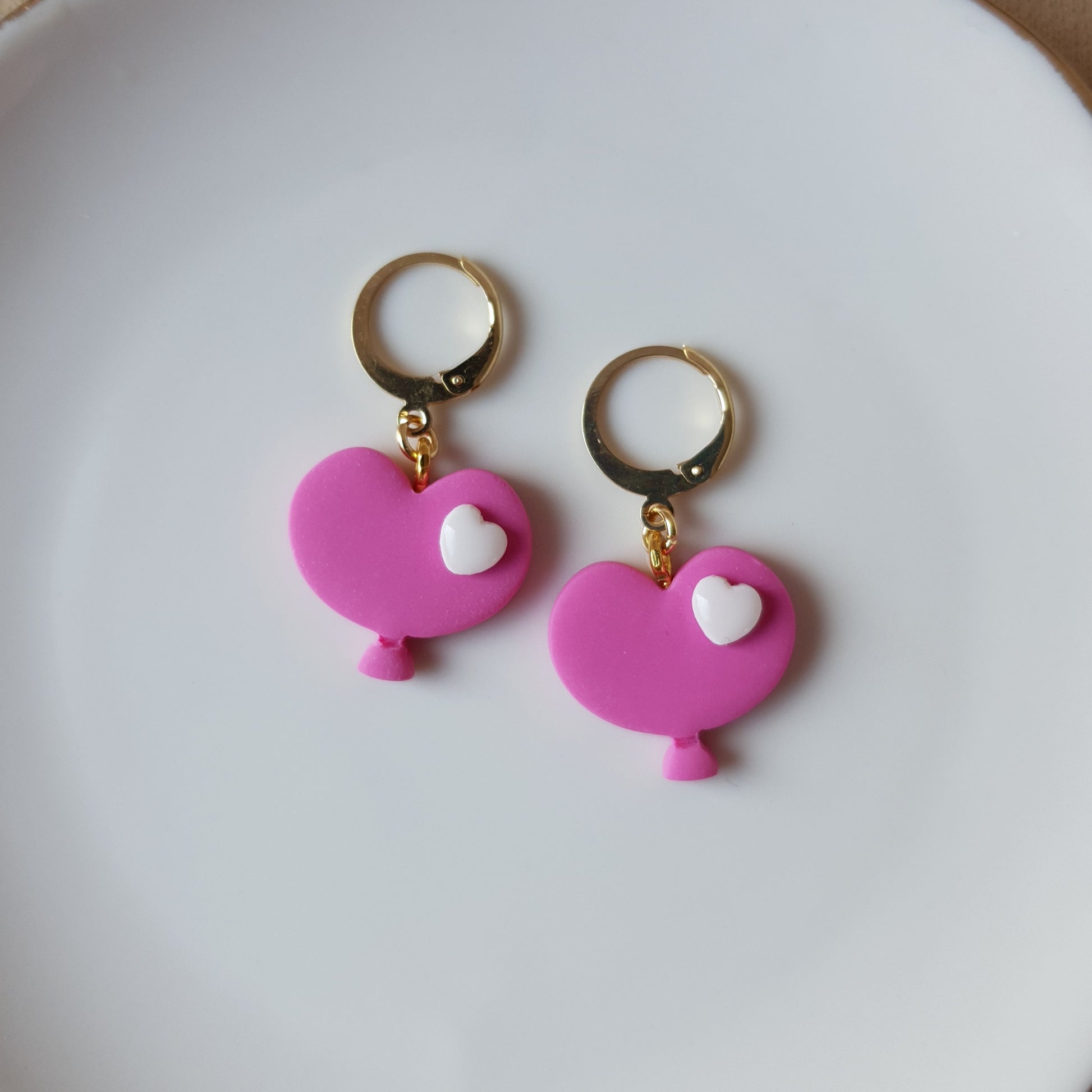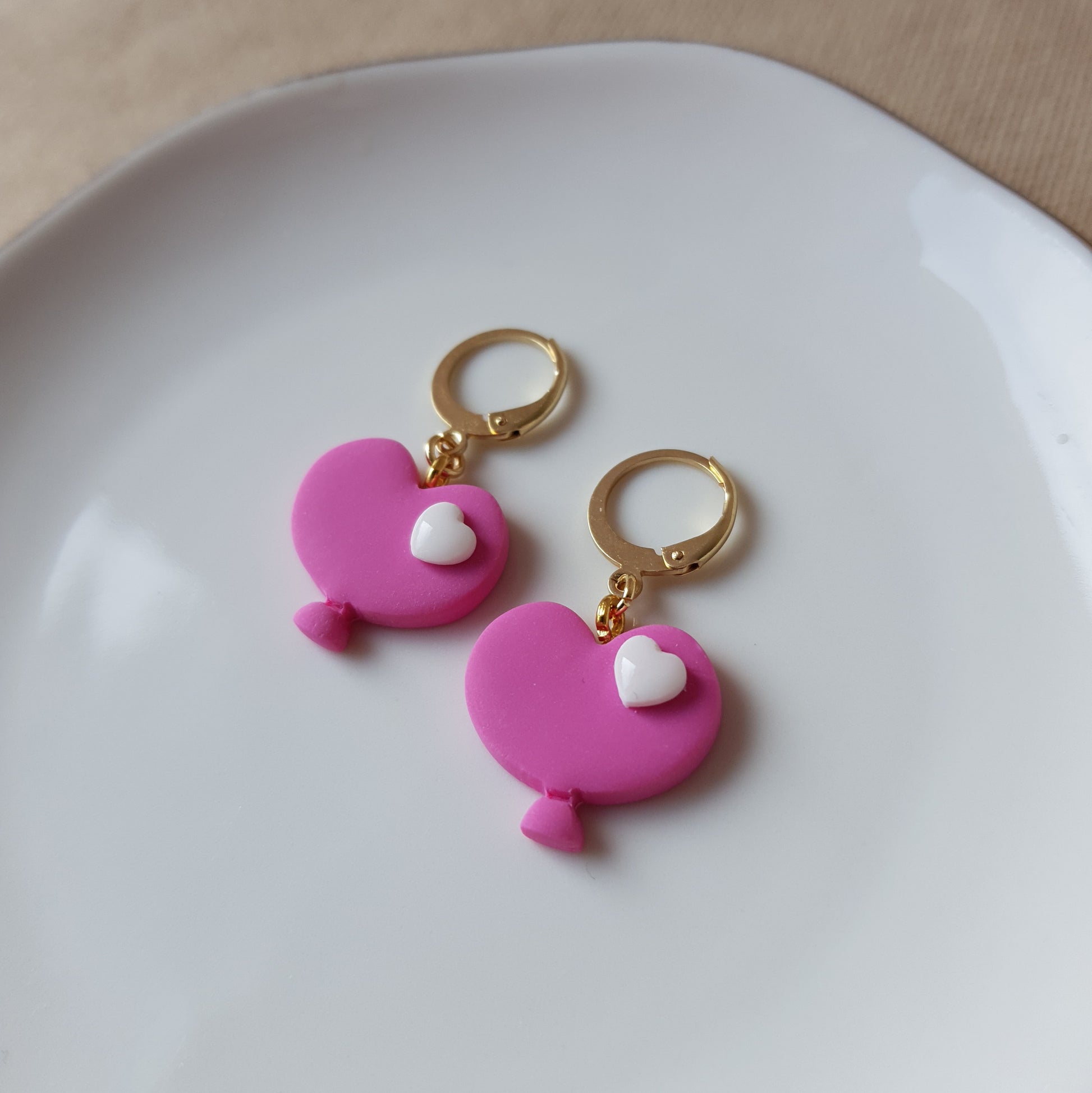 Handmade pink baloon hoop earrings.