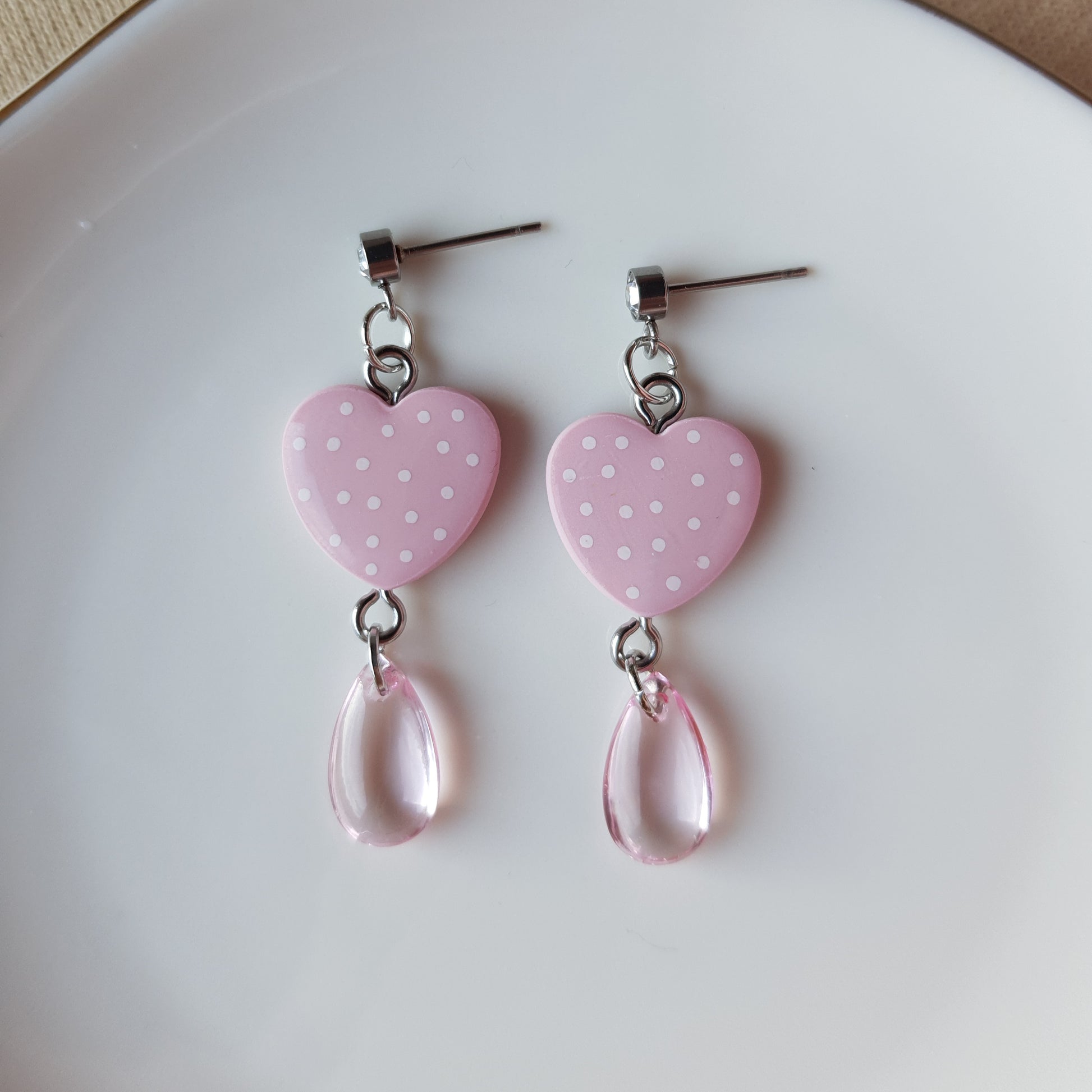 Pink spotted heart earrings
