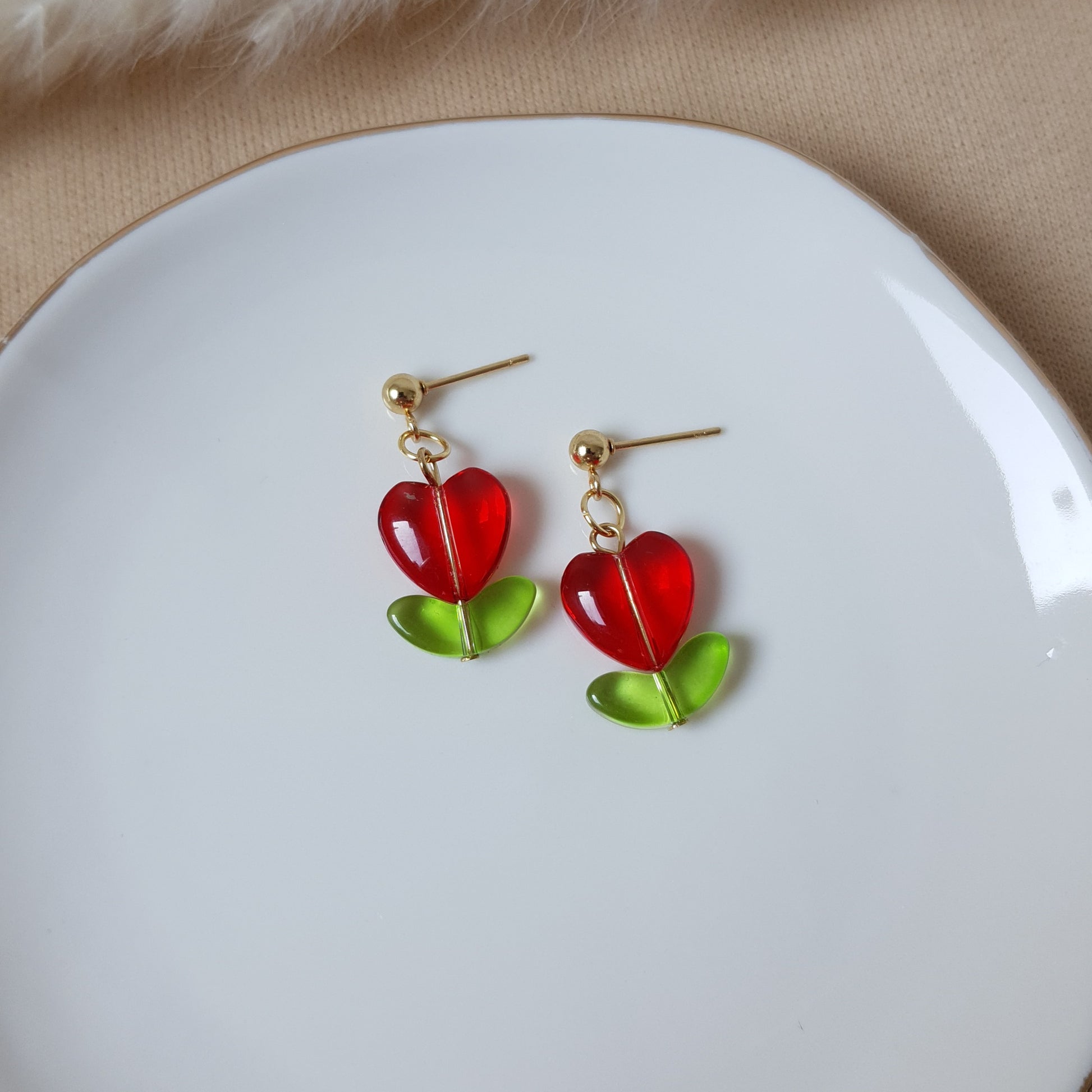 Red heart flower earrings