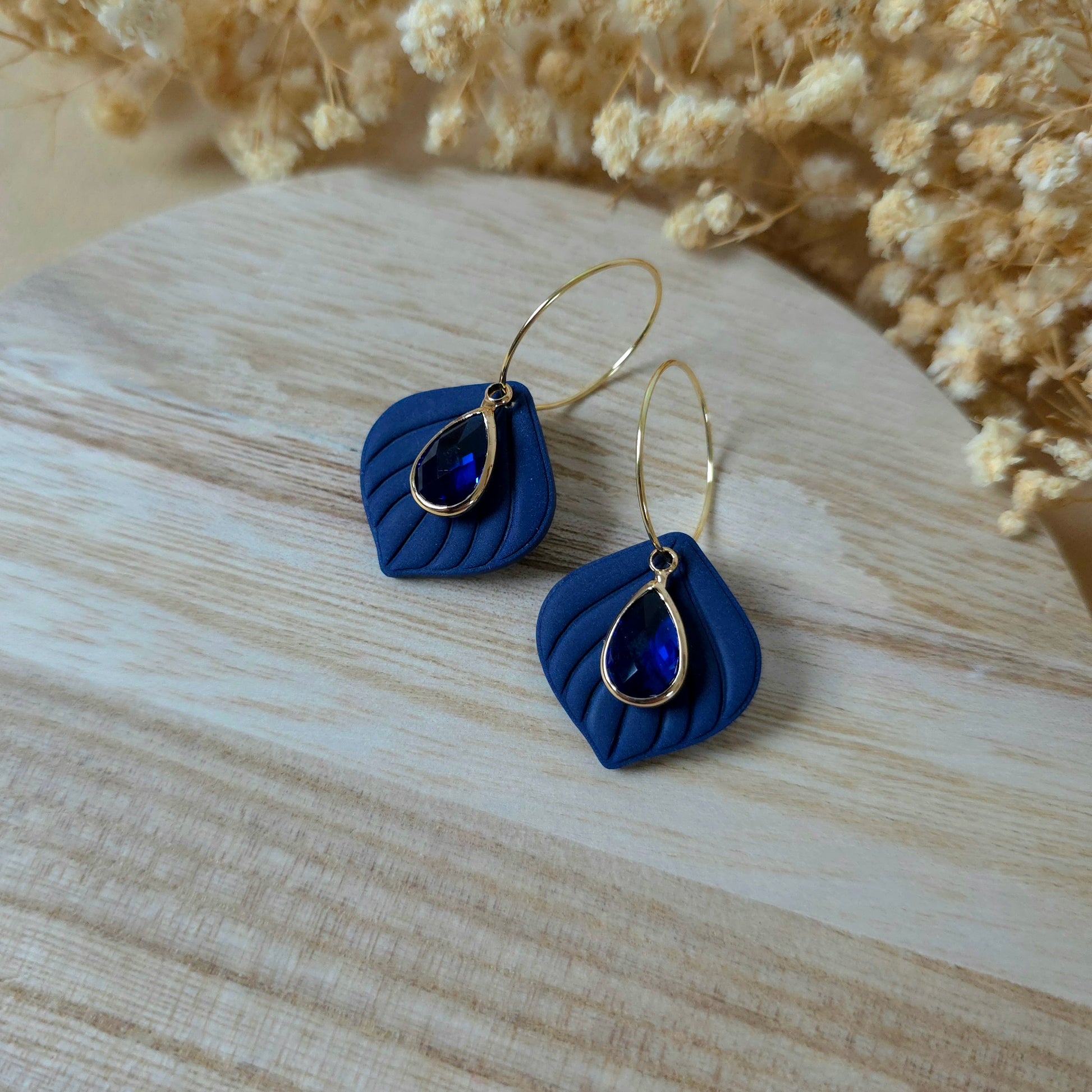 Royal blue leaf hoop earrings