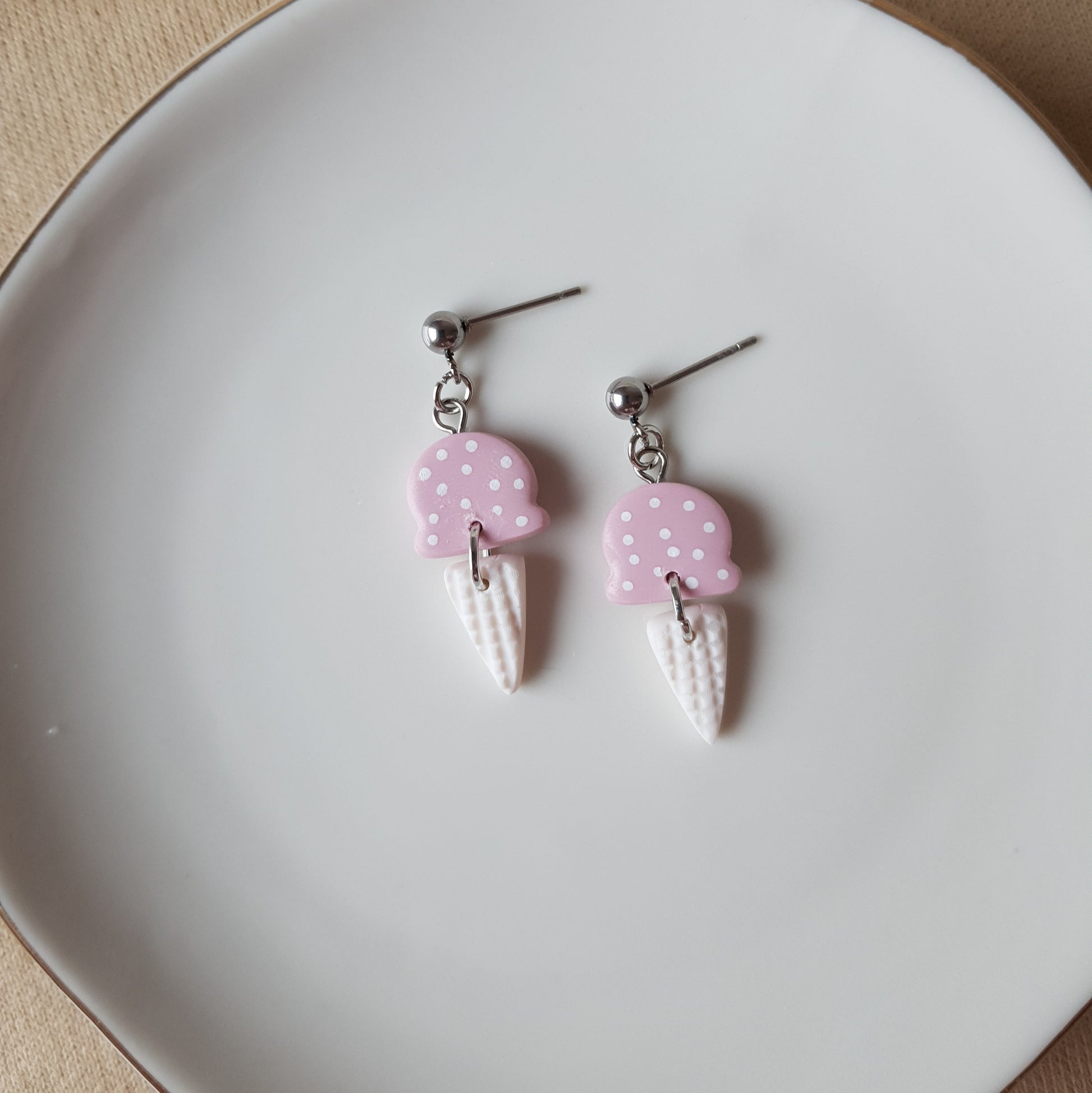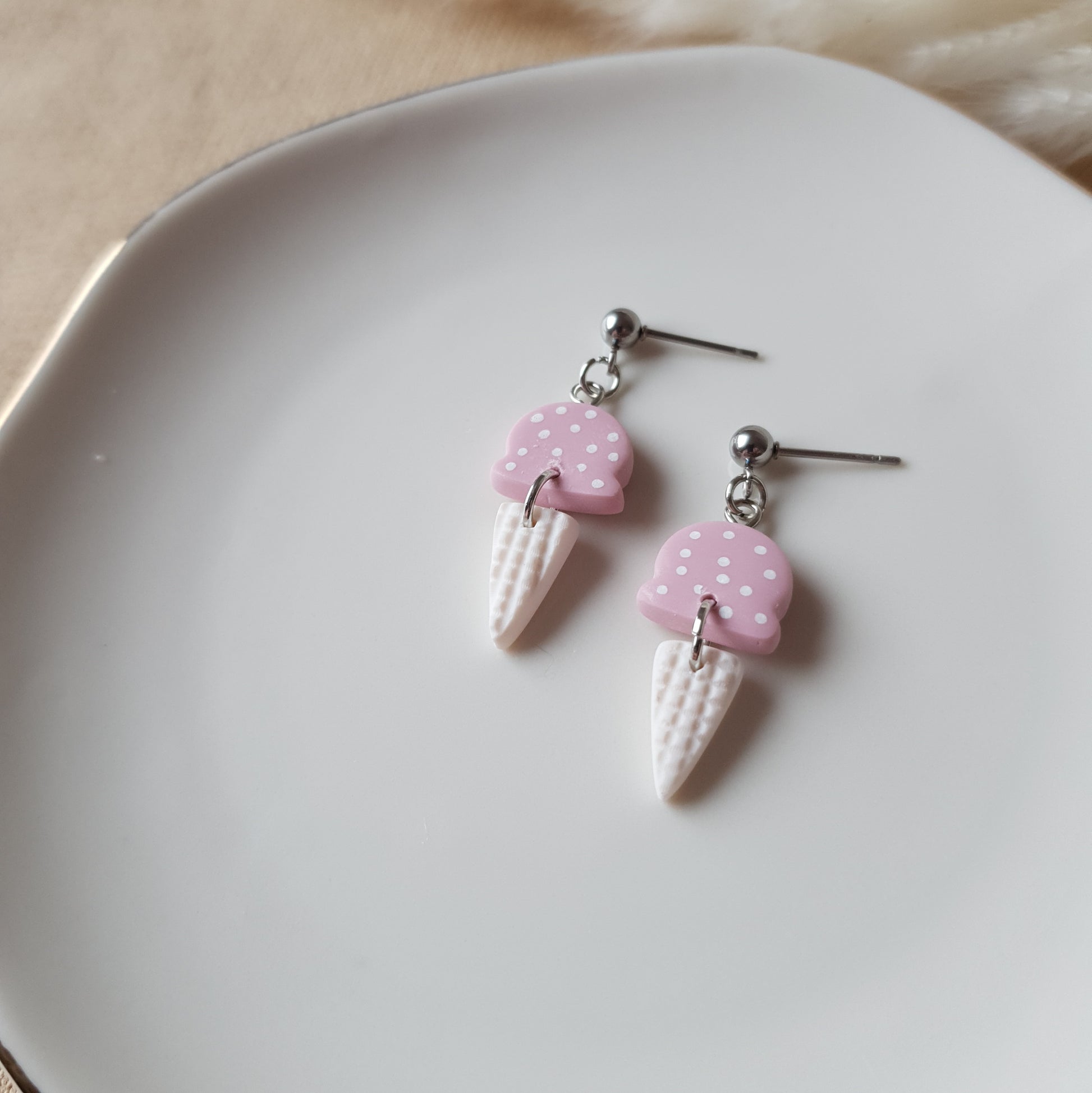 Spotted pink ice cream earrings