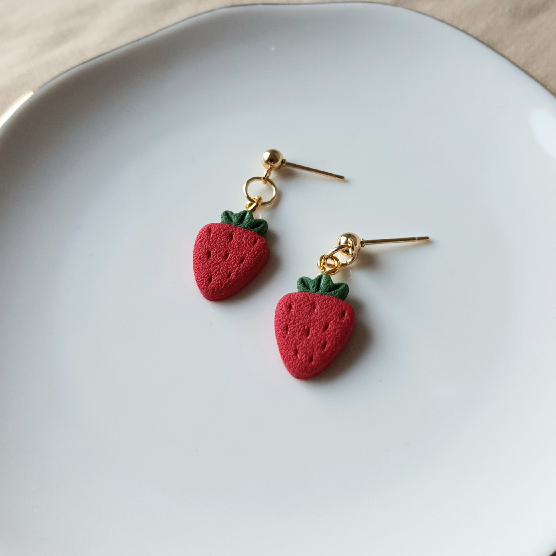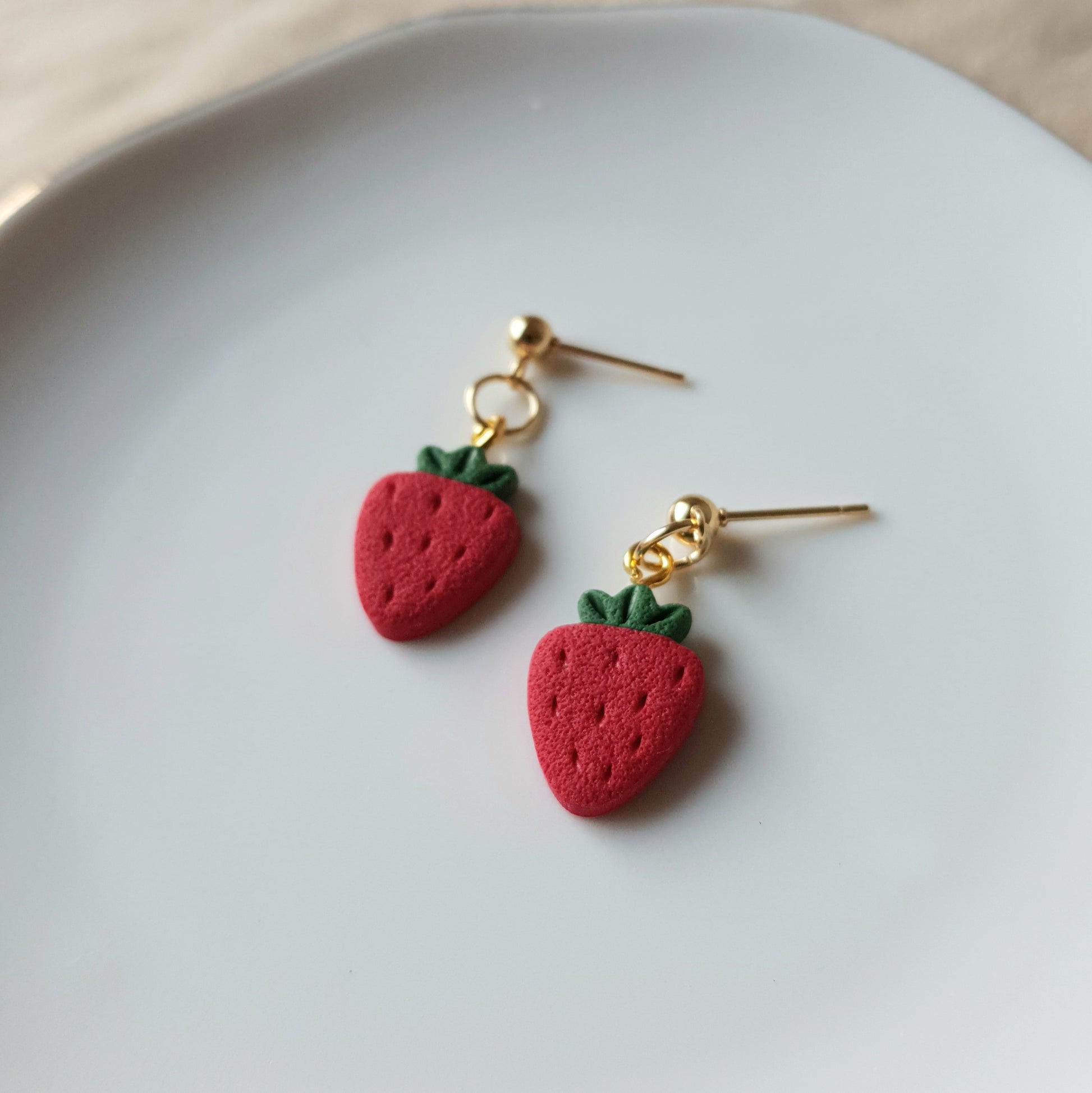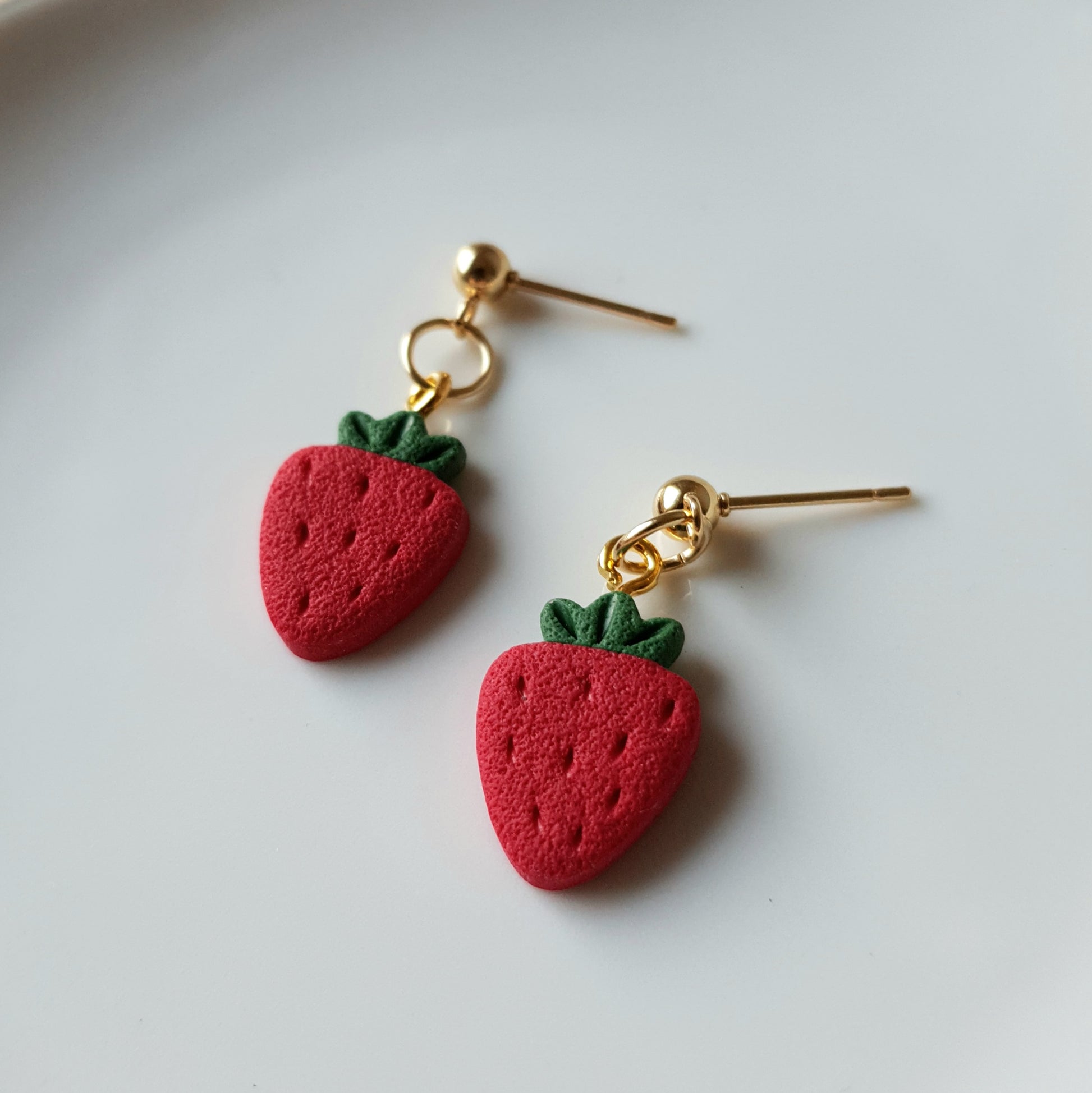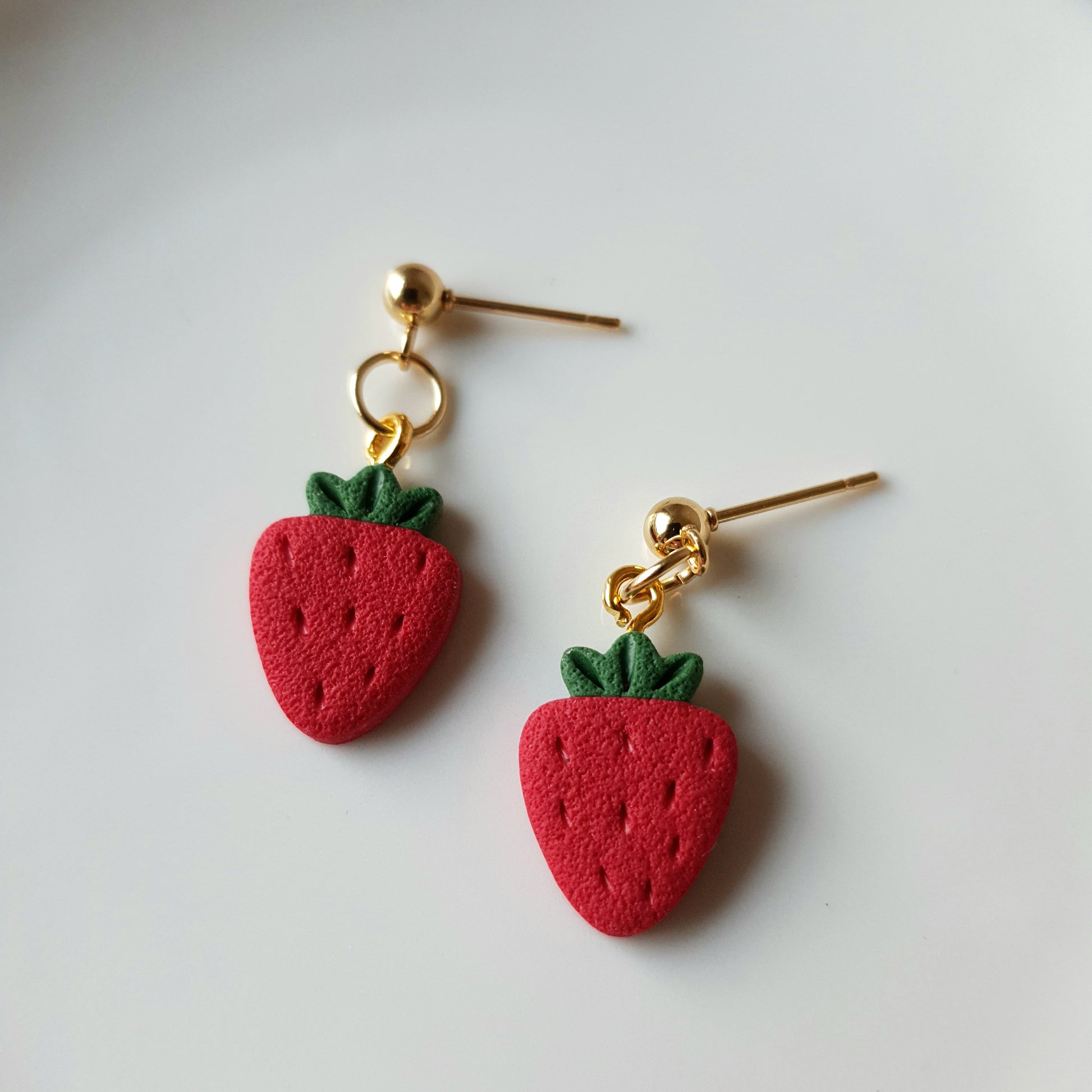 Handmade strawberry dangle earrings.