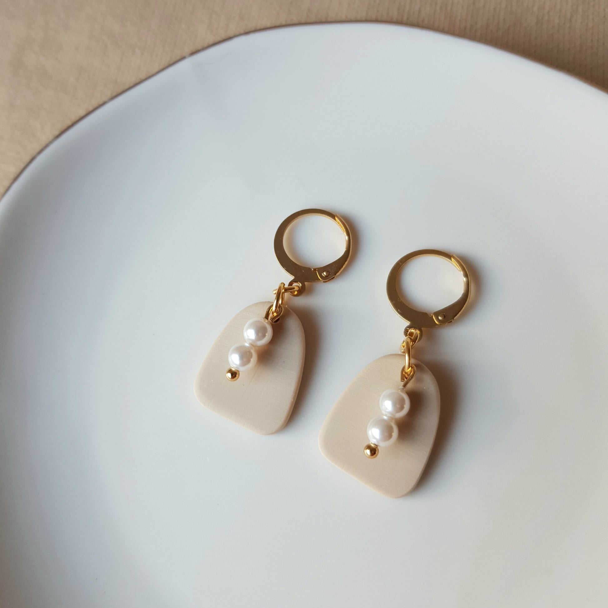 Ročno izdelani nevtralni uhani s steklenimi perlami.