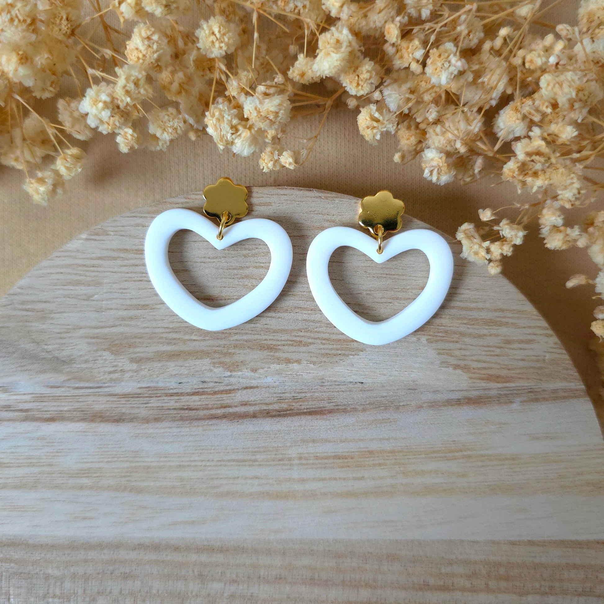 Beli široki viseči srčki