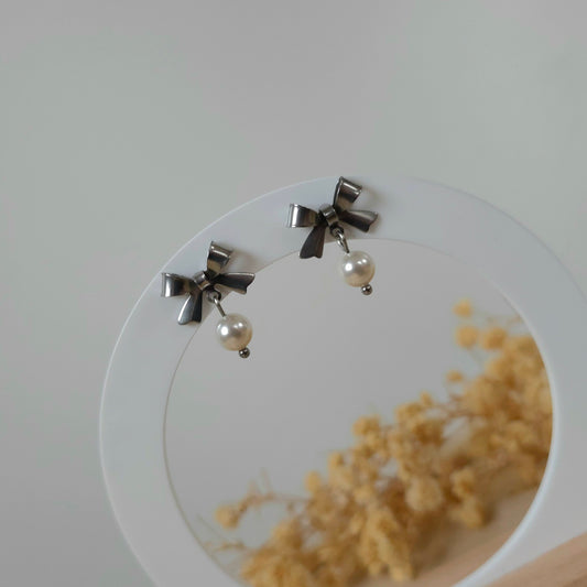 Silver bow and pearl earrings