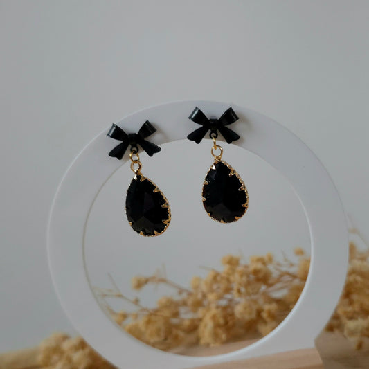 Black bow and teardrop earrings